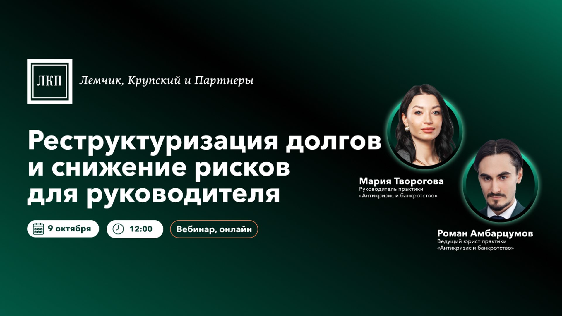 12:00-13:30 Спикеры, Творогова Мария- руководитель практики "Антикризис и банкротство", Амбарцумов Роман-ведущий юрист практики "Антикризис и банкротство"